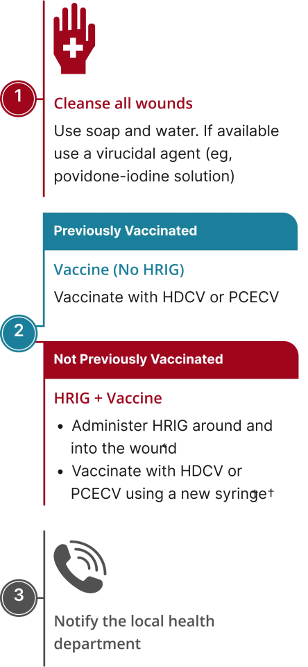 For unvaccinated persons, the combination of HyperRAB and vaccine is recommended for both bite and nonbite exposures regardless of the time interval between exposure and initiation of postexposure prophylaxis.